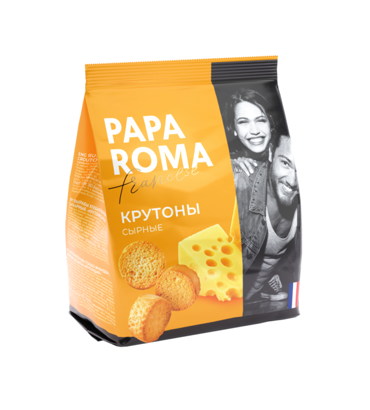 СУХАРИ фас PAPA ROMA крутоны сырные 100гр/22шт(АЕ)